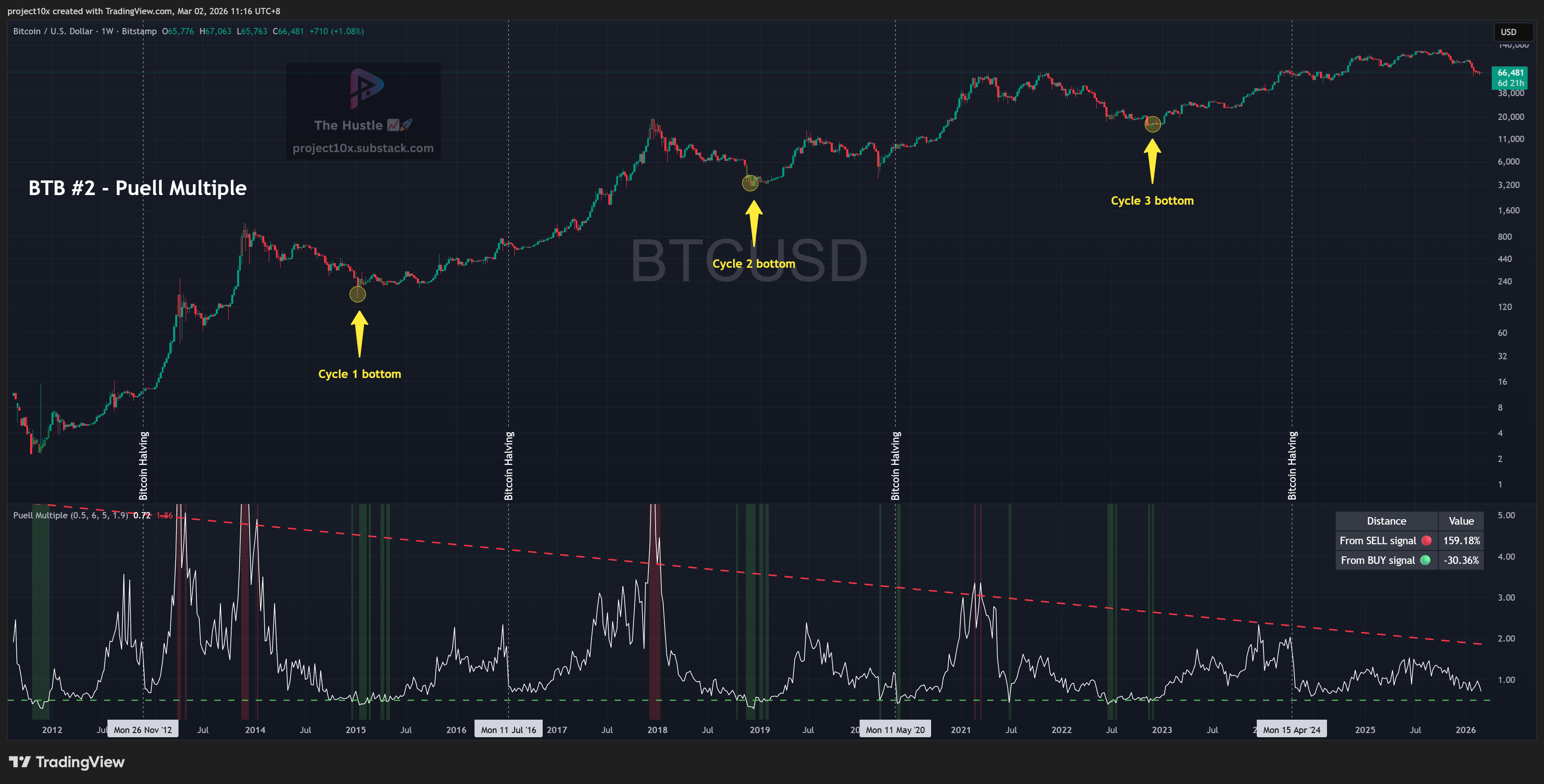 Use for BTC cycle analysis, not intraday decision-making.