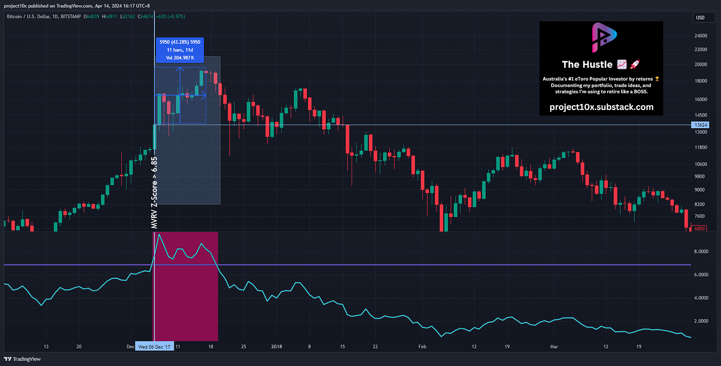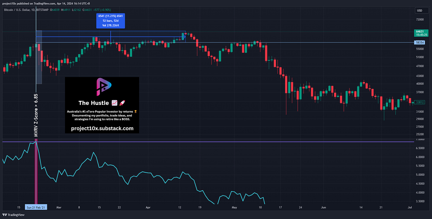 You’re probably realising that the MVRV Z-score is getting more accurate in terms of when it starts signalling and the peak price. However, this time it was a little premature 💦 in terms of the duration