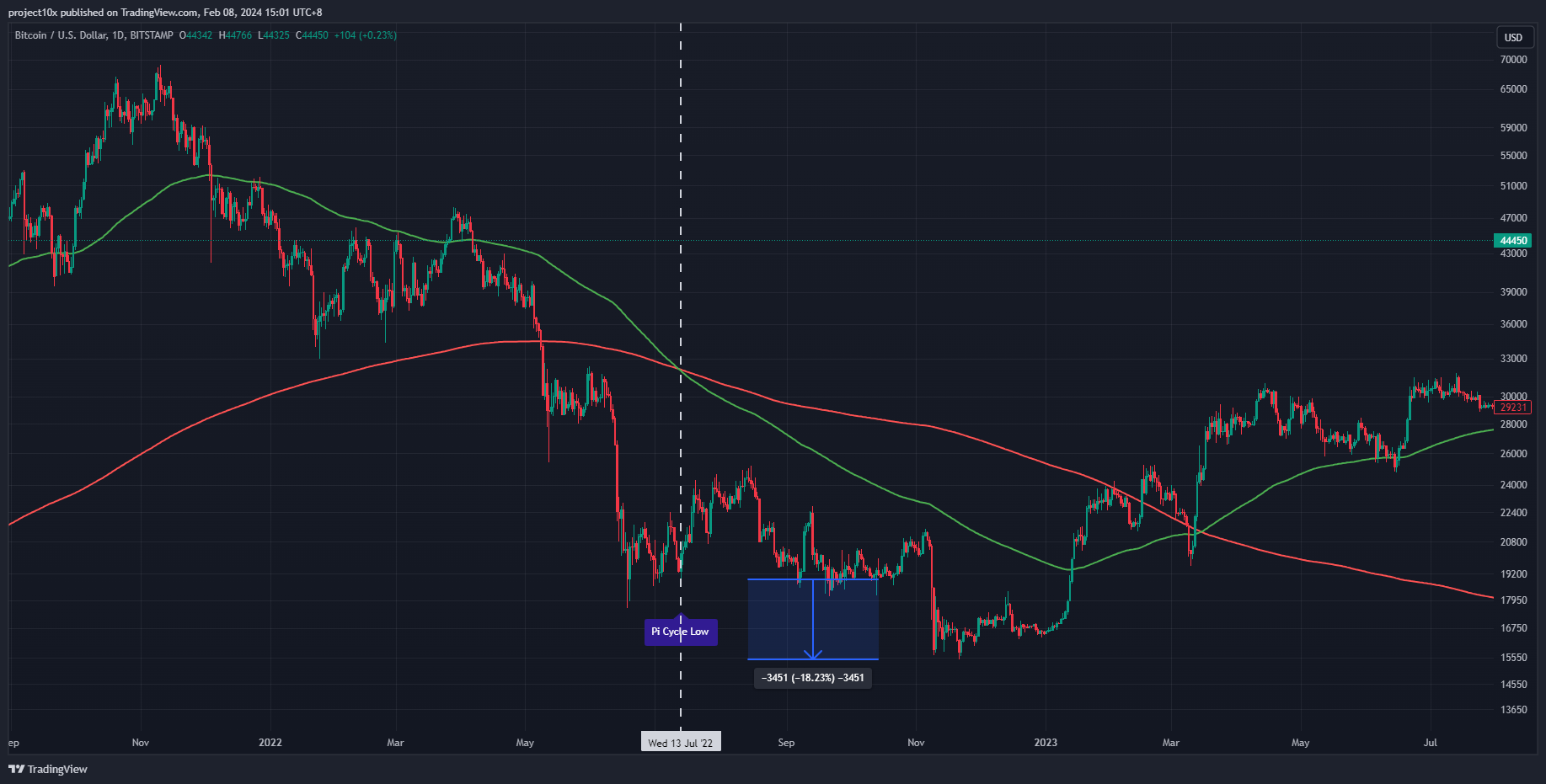 Like clockwork, PI cycle marks near the bottom at $18K BTC. Not too shabby eh?