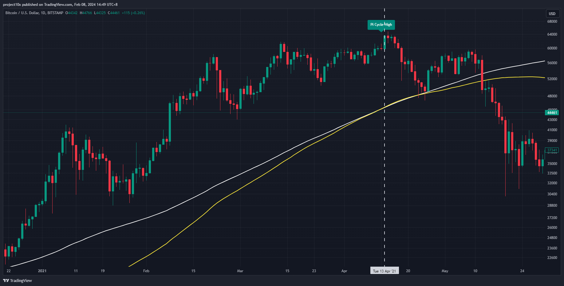 Again, PI cycle called for a top on 13th April 2021. BTC topped out the next day.