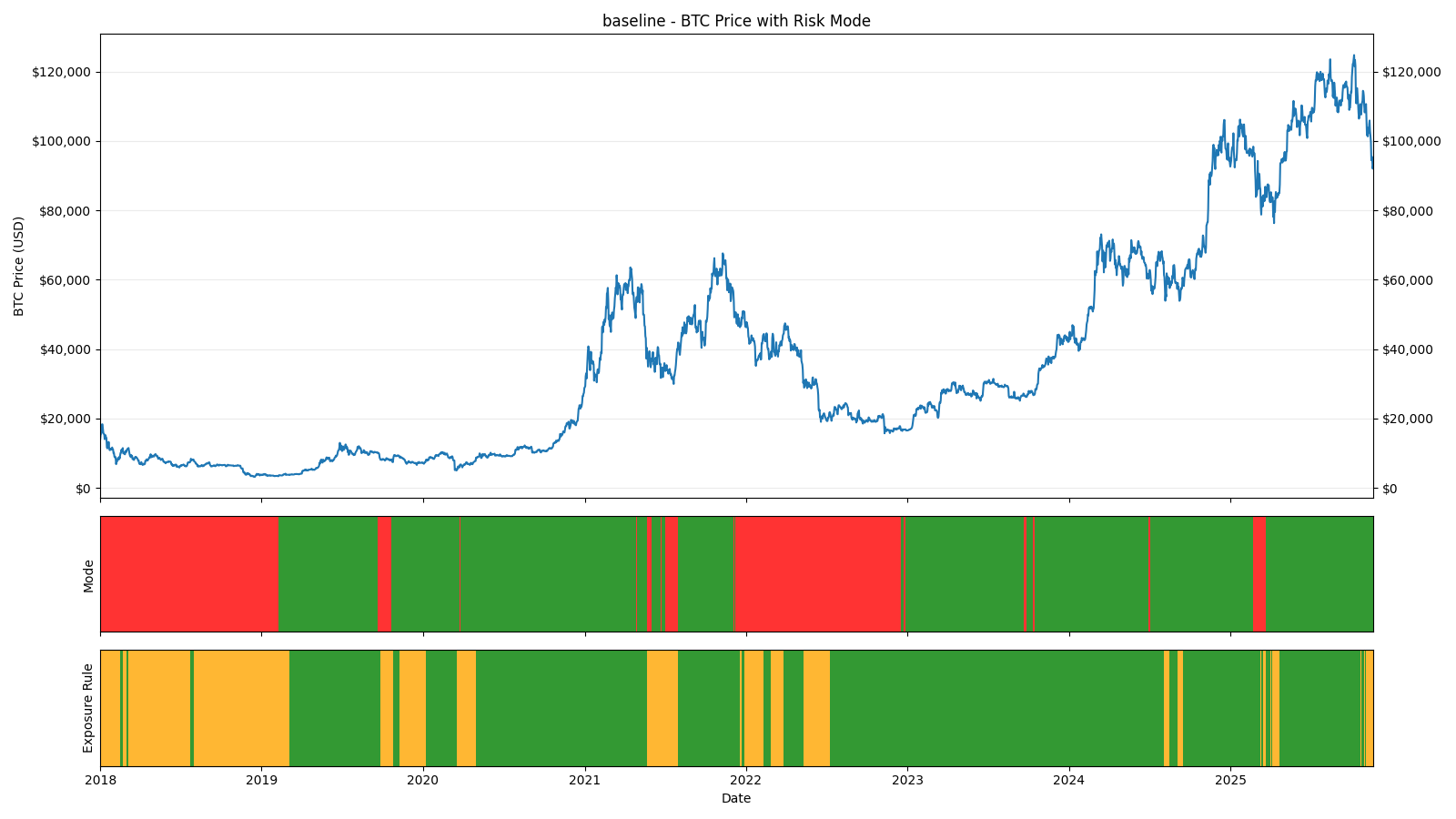 Brief RORO flickers did not persist, while ER stayed supportive, correctly treating them as noise within an early-cycle bull regime.