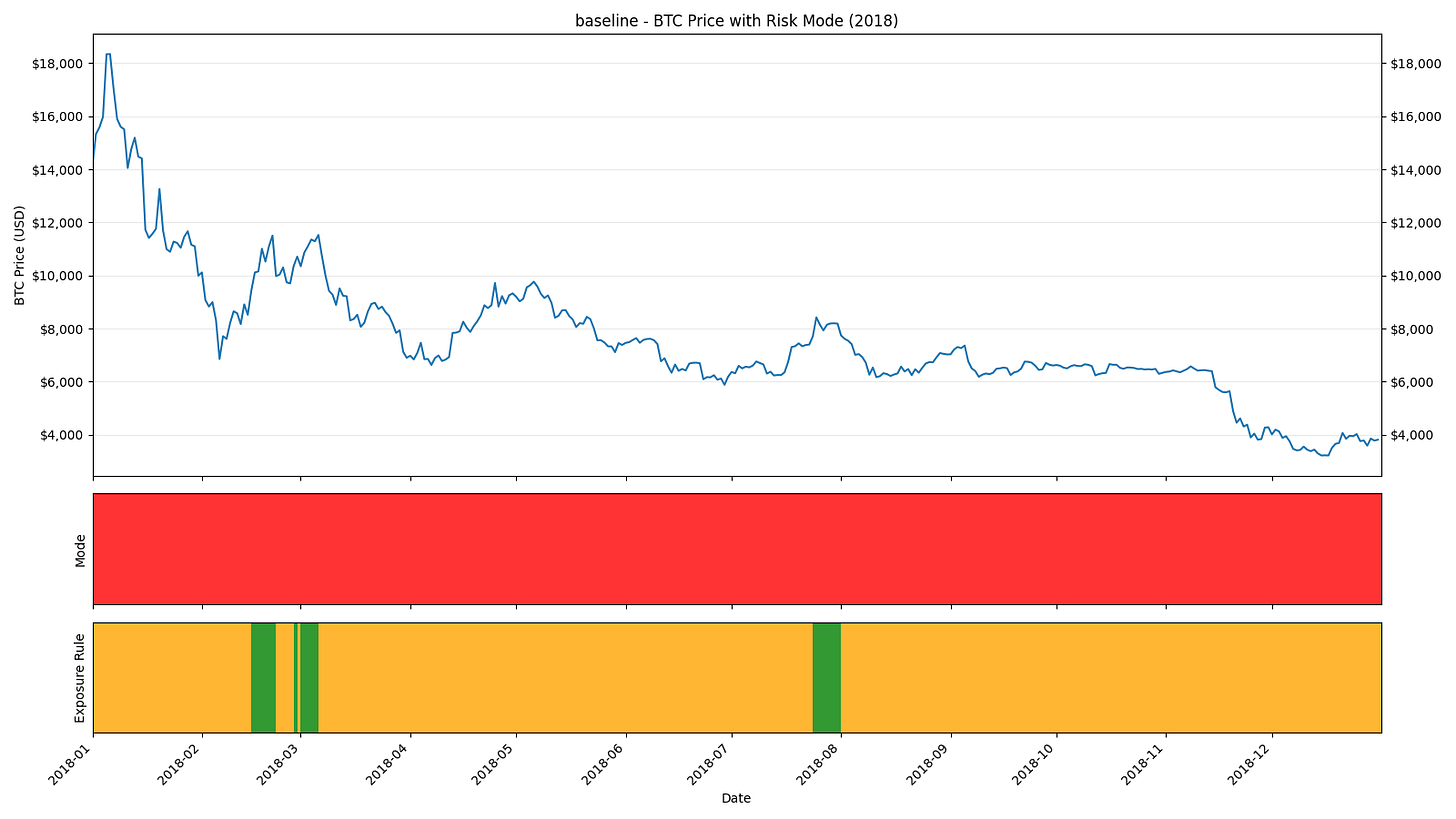 RORO stayed Risk-Off for all of 2018, correctly classifying it as a single prolonged bear market rather than a series of tradeable swings - capital preservation in action.