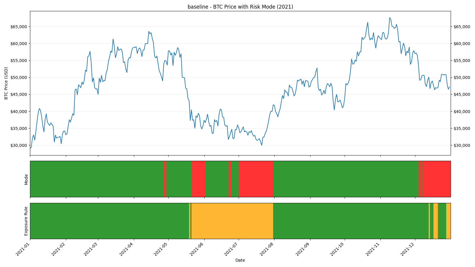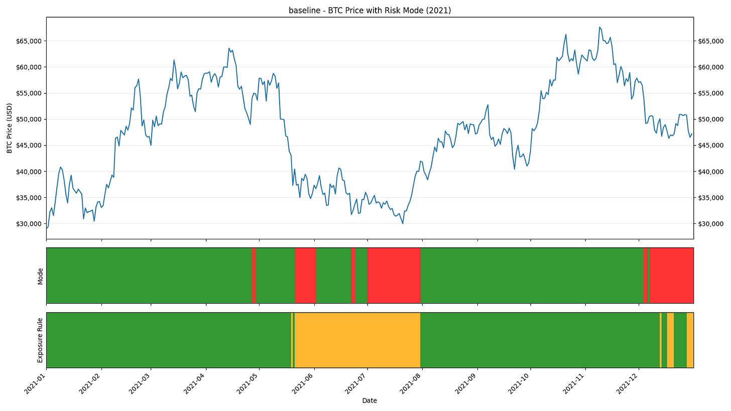 2021 shows RORO + ER managing late-cycle risk, staying invested while conditions justified it, moderating exposure during structural damage, and stepping back before the regime fully failed.