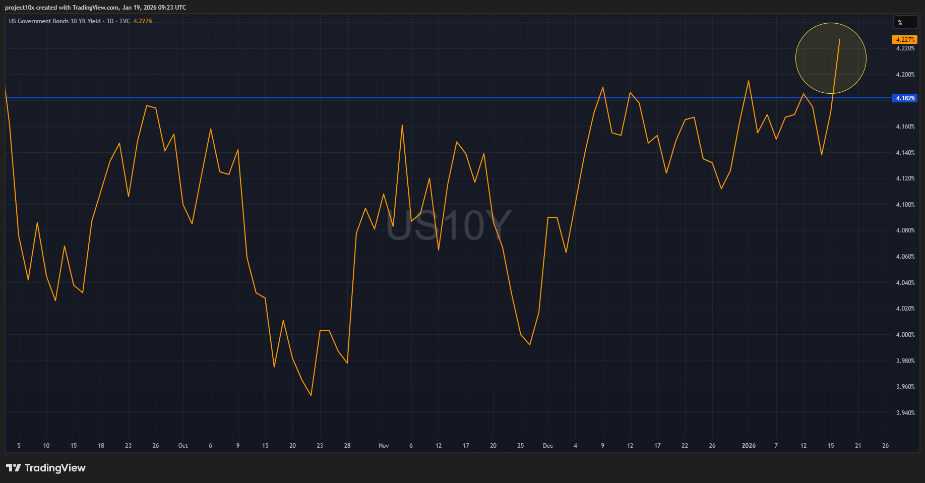 The long-term bond yields (in this case, the US 10Y) have broken through a multi-month resistance level.