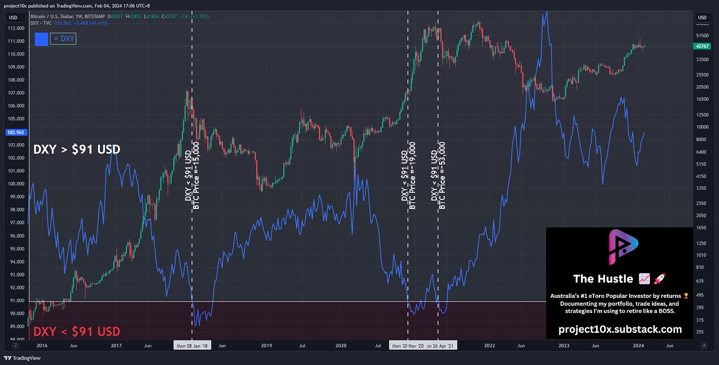 Signal: when DXY slides below ~$91.