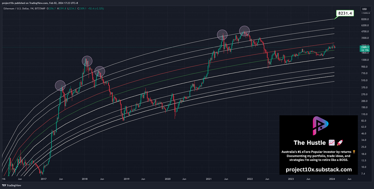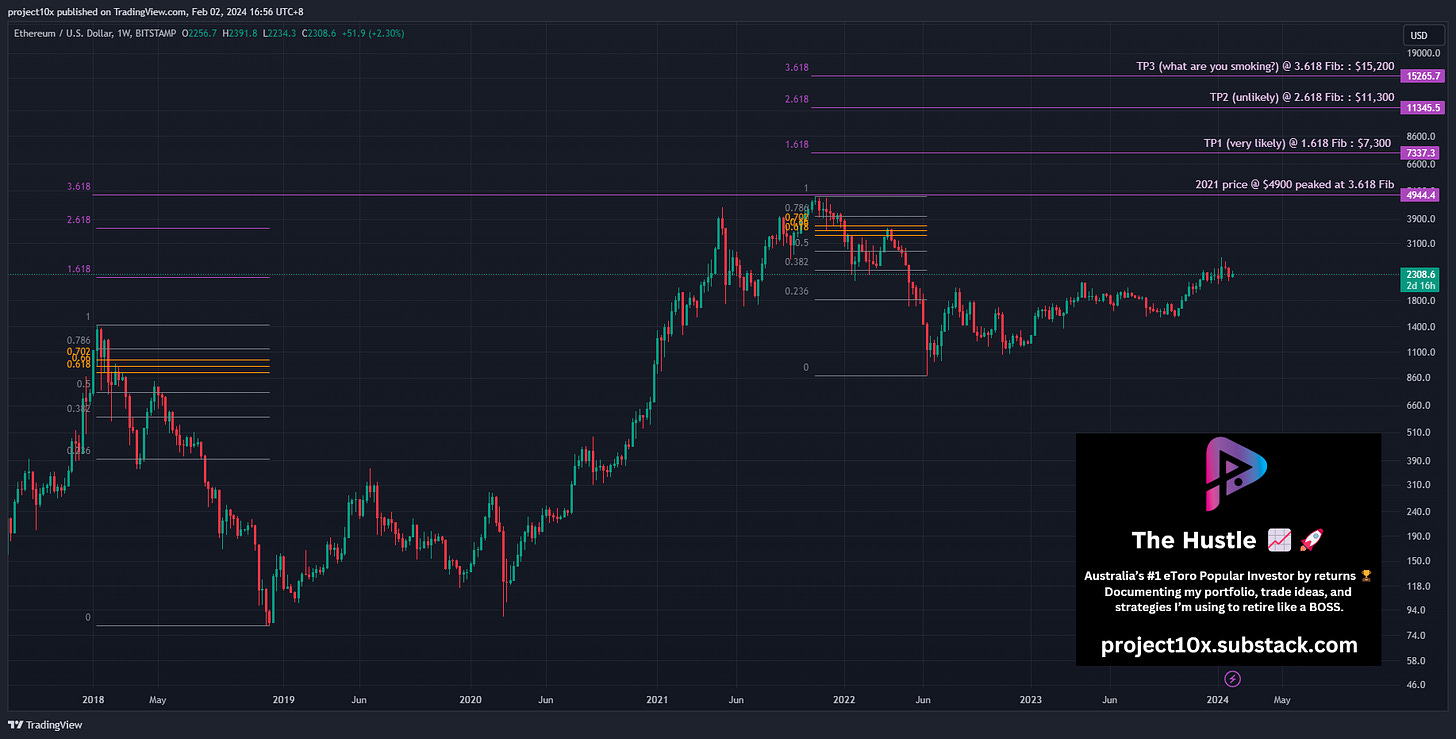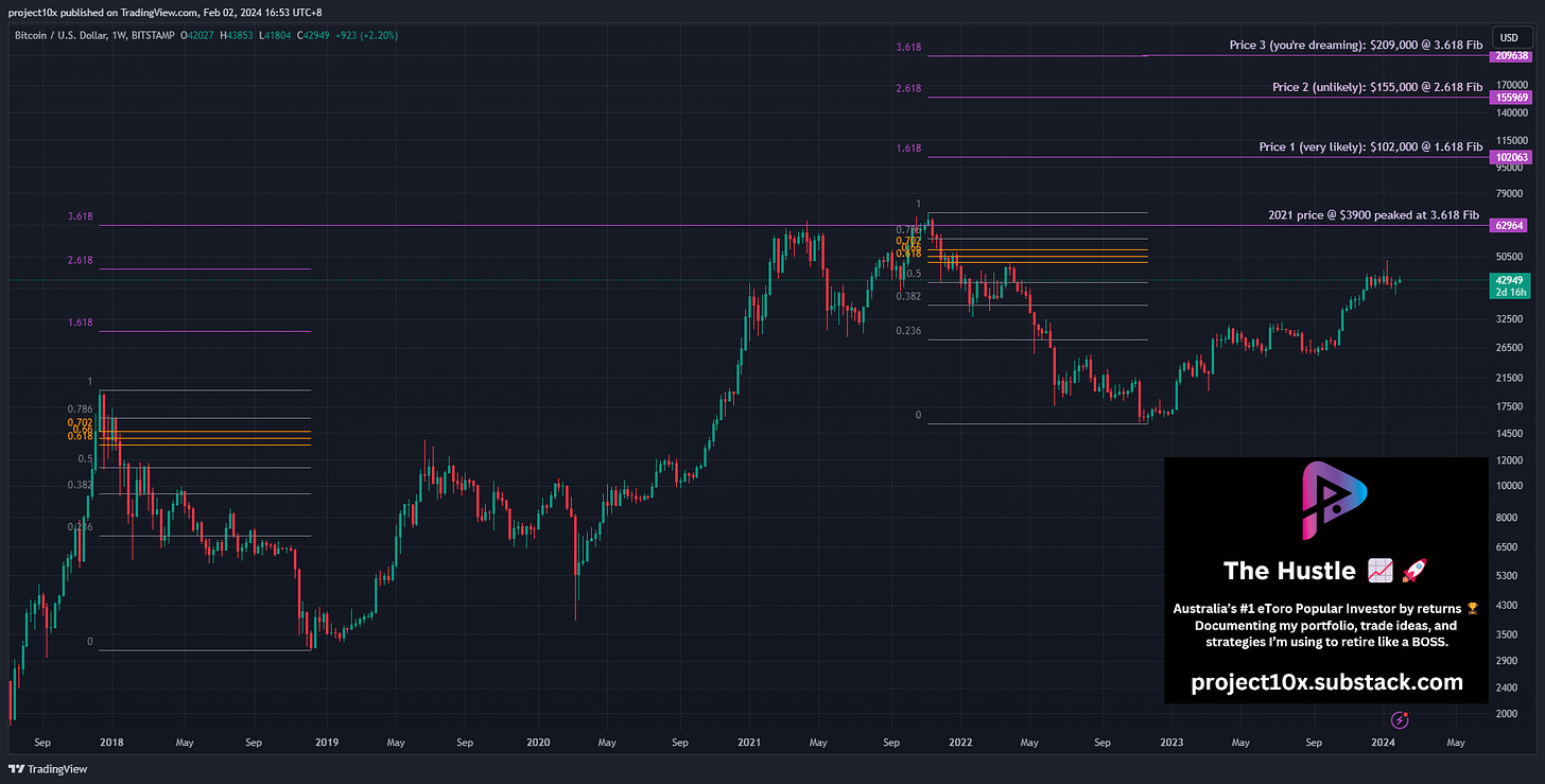 Signal: when the price hits the 1.618 Fib of the 2021/22 peak and trough. I’ve provided charts for BTC, ETH, and SOL