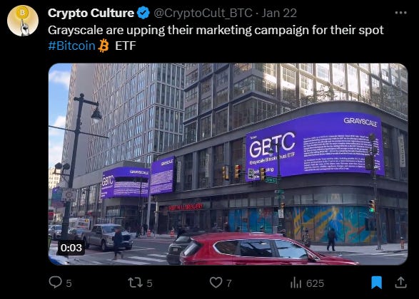 The BTC spot ETFs are here and the commercials have been nothing short of amazing.
