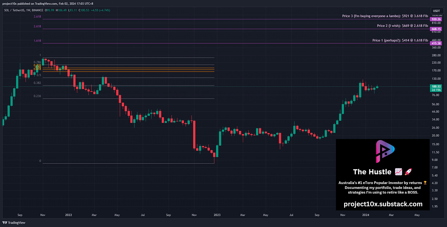 Status: BTC, ETH, and SOL have over 100% to climb to reach the 1.618 Fib.