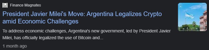 Status: It’s official. The new Argentinian President has legalised crypto as legal tender